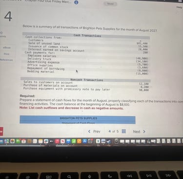 Below is a summary of all transactions of Brighton Pets Supplies for the month of August 2027.